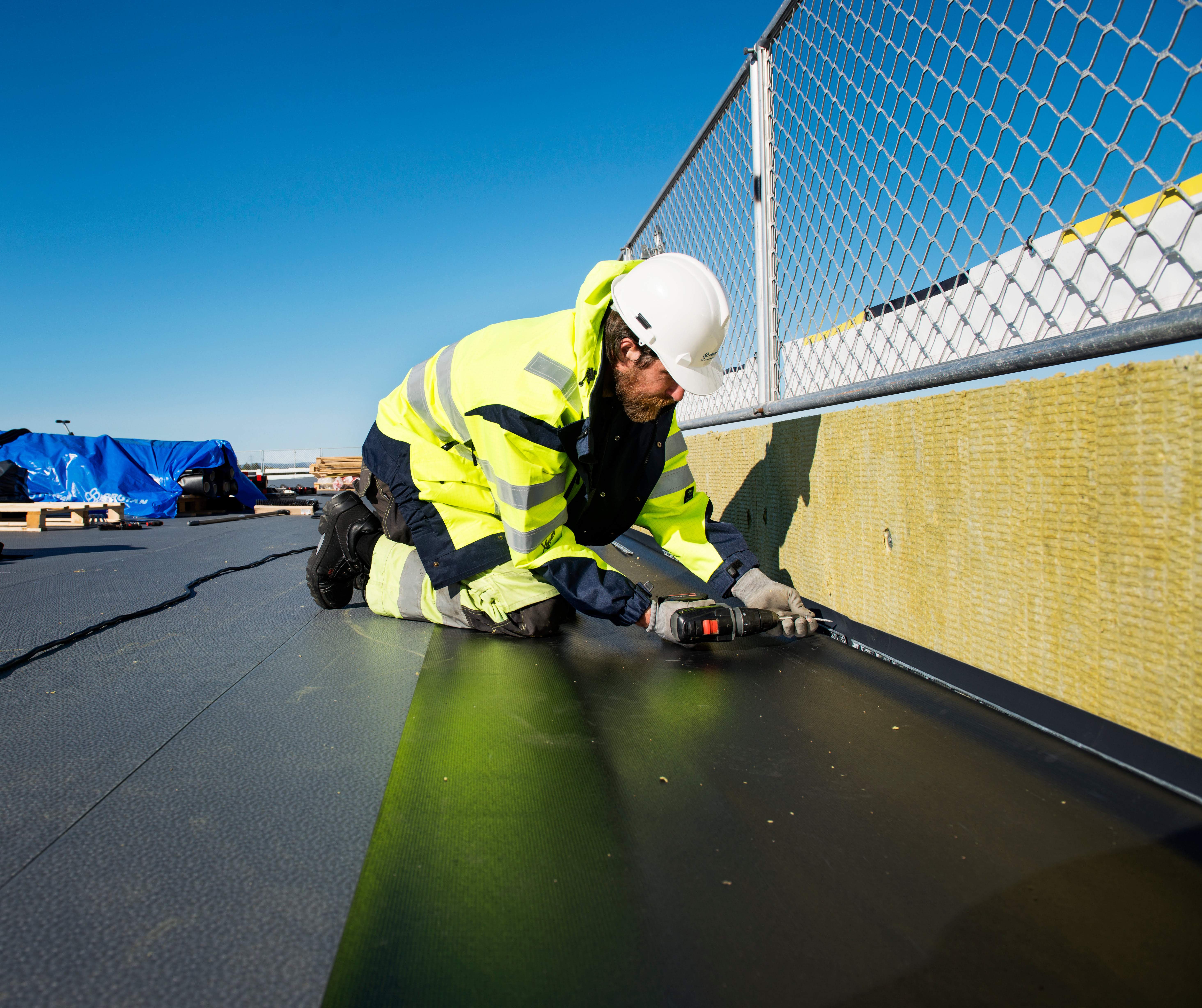 Membrany dachowe na plac budowy dostarczane są w zwiniętych rolkach. Praktycznie gotowe do rozłożenia i montażu na każdym rodzaju podłoża, zarówno w nowym budownictwie, jak i w projektach renowacji. Standardowo materiał układa się na zakładkę, przytwierdzając płachtę mechanicznie wzdłuż krawędzi za pomocą łączników mechanicznych zgrzewając dwa nachodzące na siebie krańce membran przy użyciu gorącego powietrza. Taka metoda zapewnia szczelność i jest efektywna nawet przy temperaturze sięgającej -30oC. Protan, norweski producent membran dachowych, zaprojektował innowacyjny system Vacuum, który nie wymaga zastosowania łączników na powierzchni dachu. Membranę przytwierdza się jedynie po obwodzie dachu. System wykorzystuje siłę wiatru, by utworzyć efekt próżni. Im silniej wieje wiatr, tym mocniej przyssana zostaje membrana. To rozwiązanie bardzo ekonomiczne, głównie dzięki temu, że nie są w nim wymagane łączniki. Dodatkowo nie wymaga przebijania spodniej warstwy paroszczelnej.