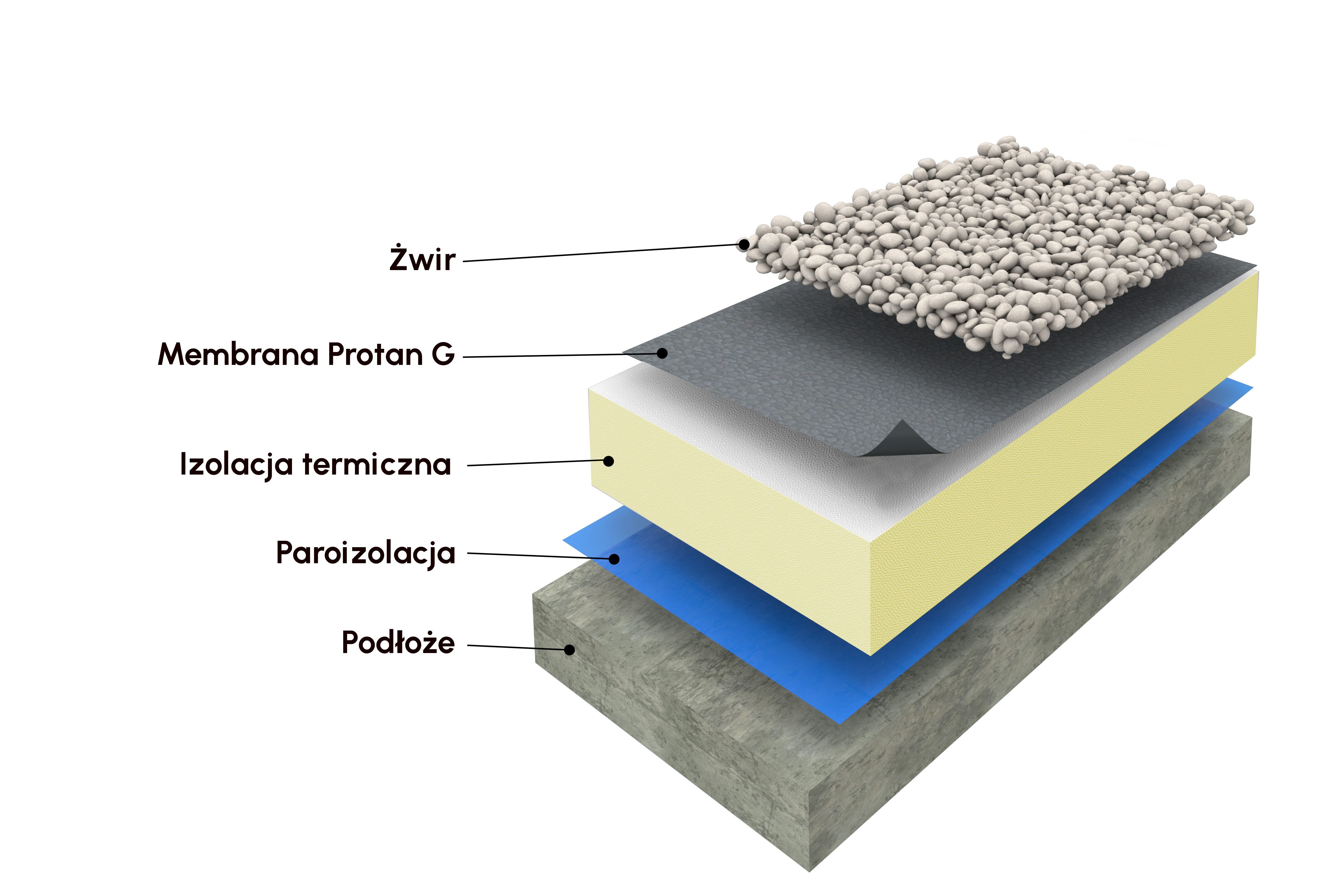 Membrana Protan G stosowana jest jako membrana na dachach balastowanych i tarasach.